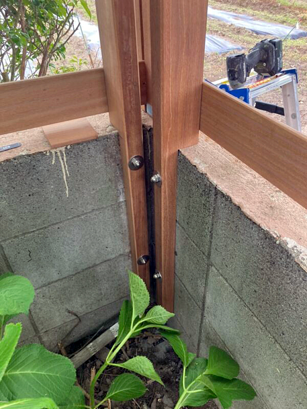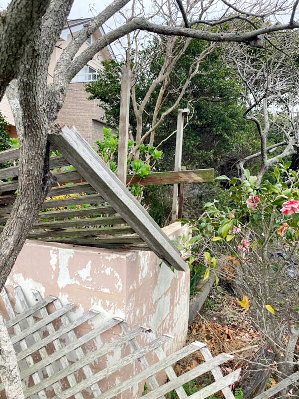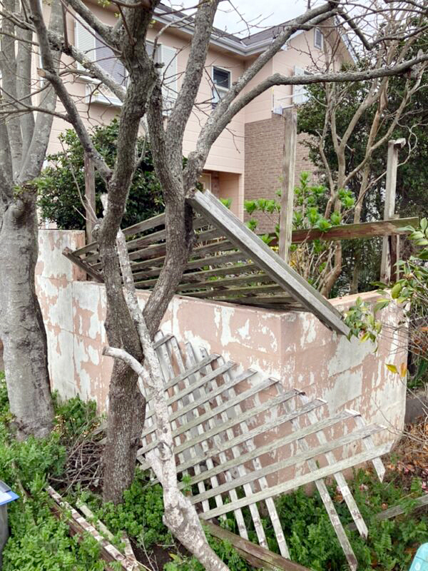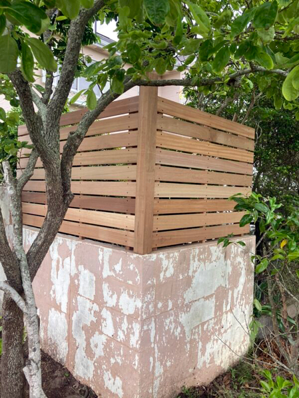 台風で壊れてしまったフェンスをセランガンバツ材を使用してきれいに作り直しました。