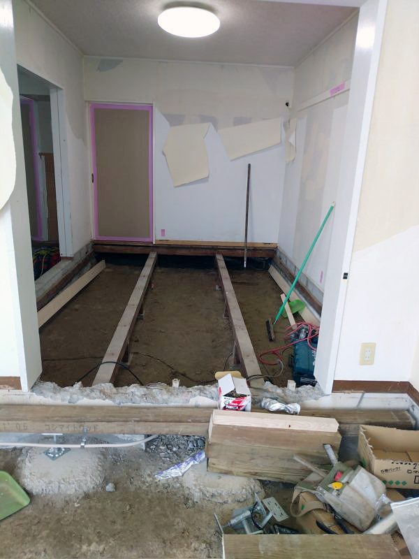 床を解体し、床組からの工事でした。